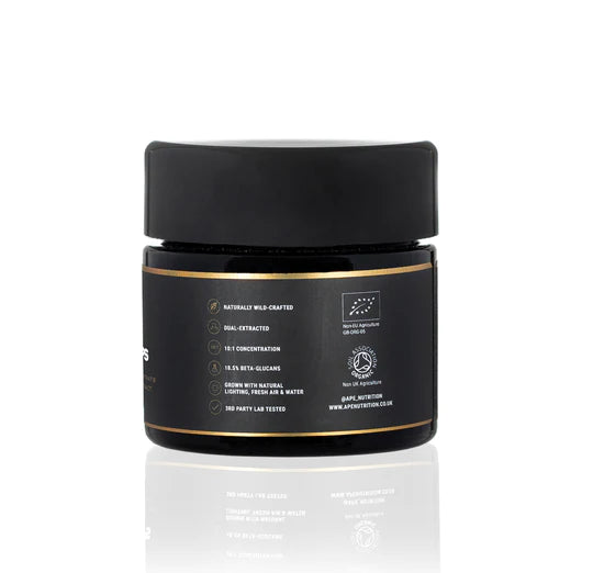On completion of this process, we have our finished product lab analysed to demonstrate how our method maintains a really high level of the beneficial beta-glucans present in these mushrooms. Our latest batch contains 25.6%.