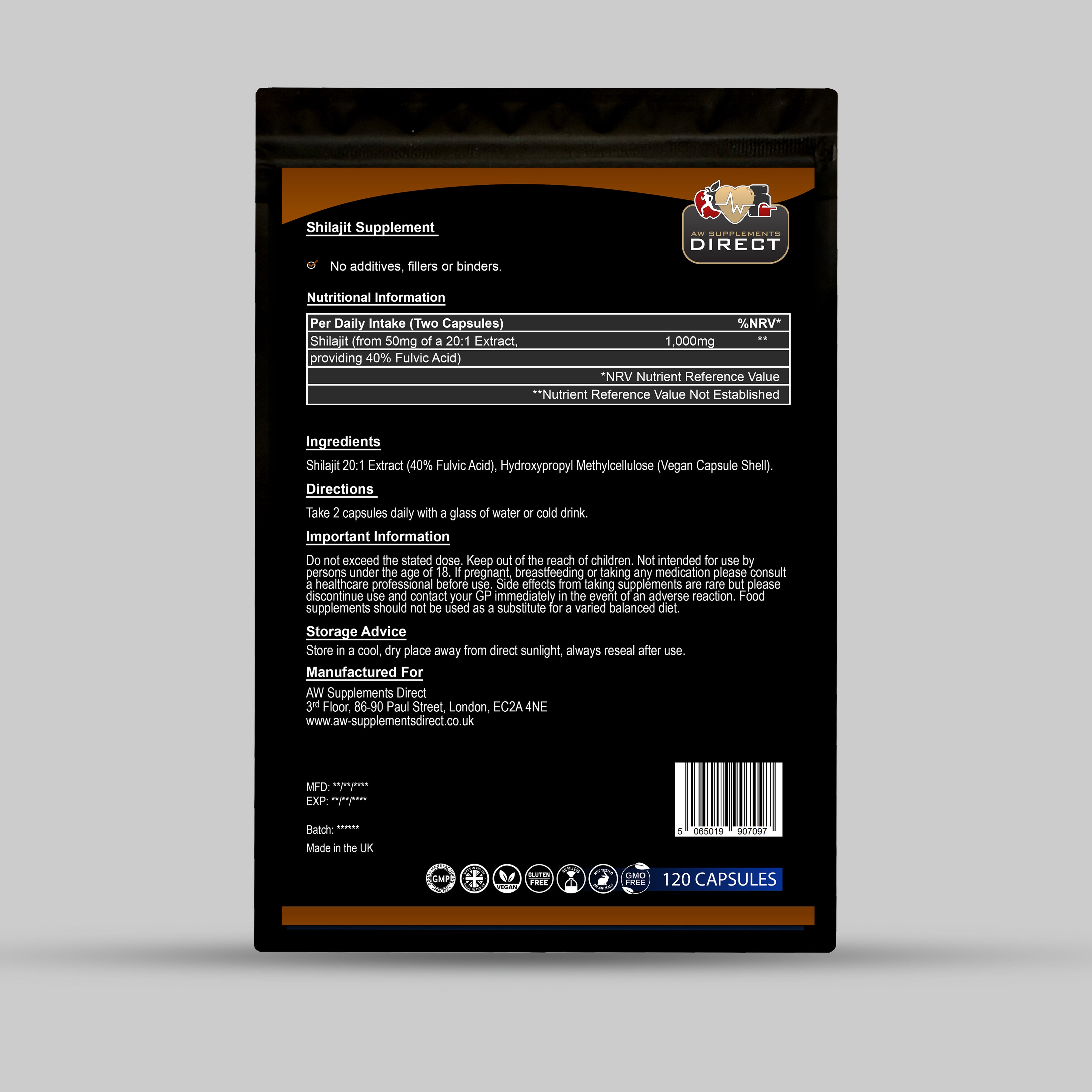 Pure Himalayan Shillajit from 50mg in a 20:1 extract 1000mg capsule, 40% Fulvic acid with NO added fillers or binders